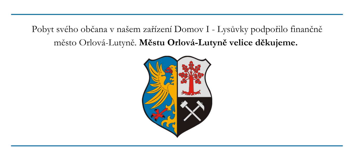 Pobyt svého občana v našem zařízení Domov I - Lysůvky podpořilo finančně město Orlová. Městu Orlová velice děkujeme.