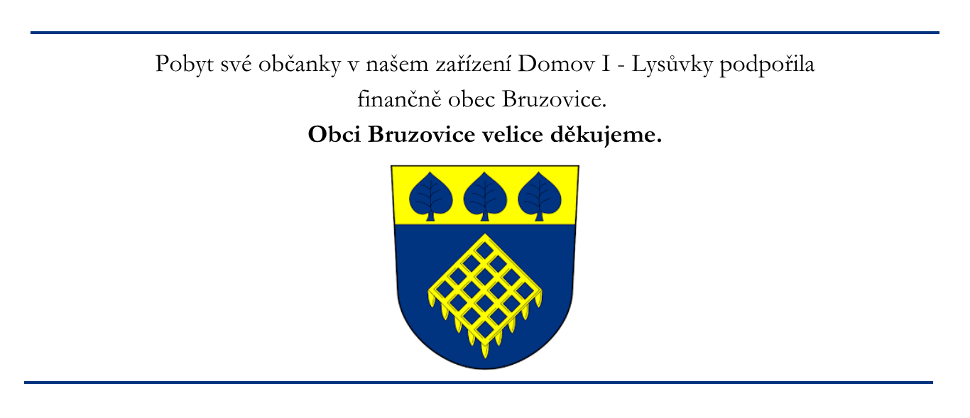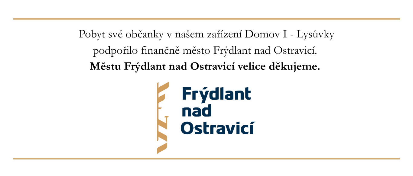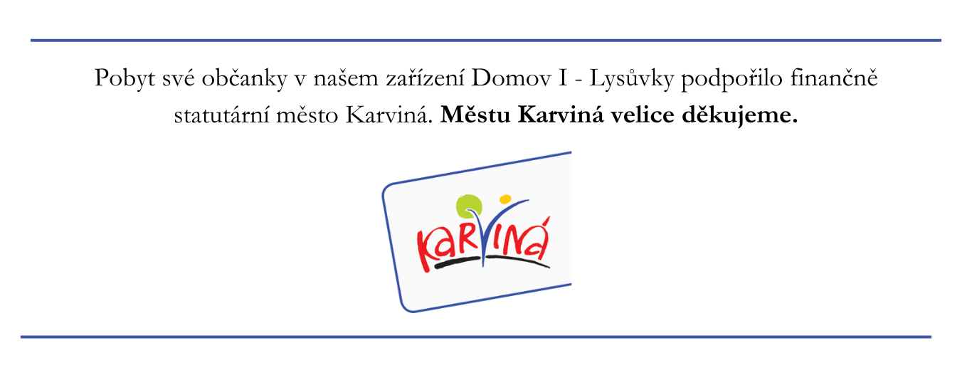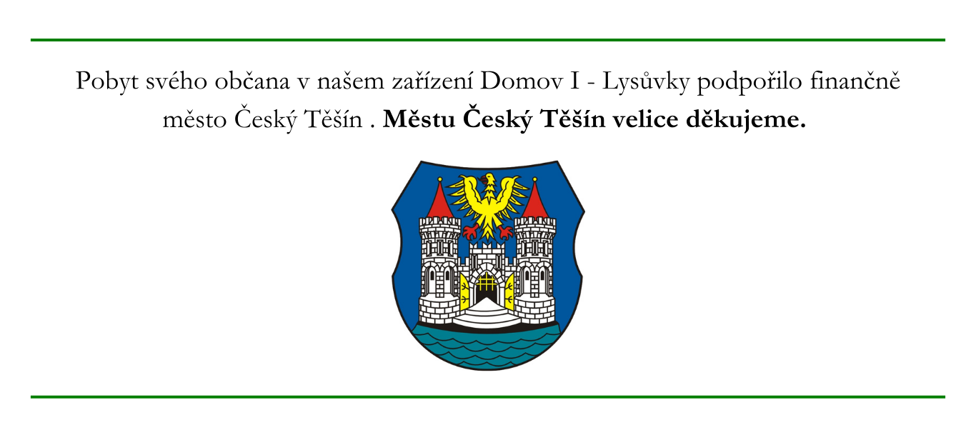 Pobyt svého občana v našem zařízení Domov I - Lysůvky podpořilo finančně město Český Těšín. Městu Český Těšín velice děkujeme.