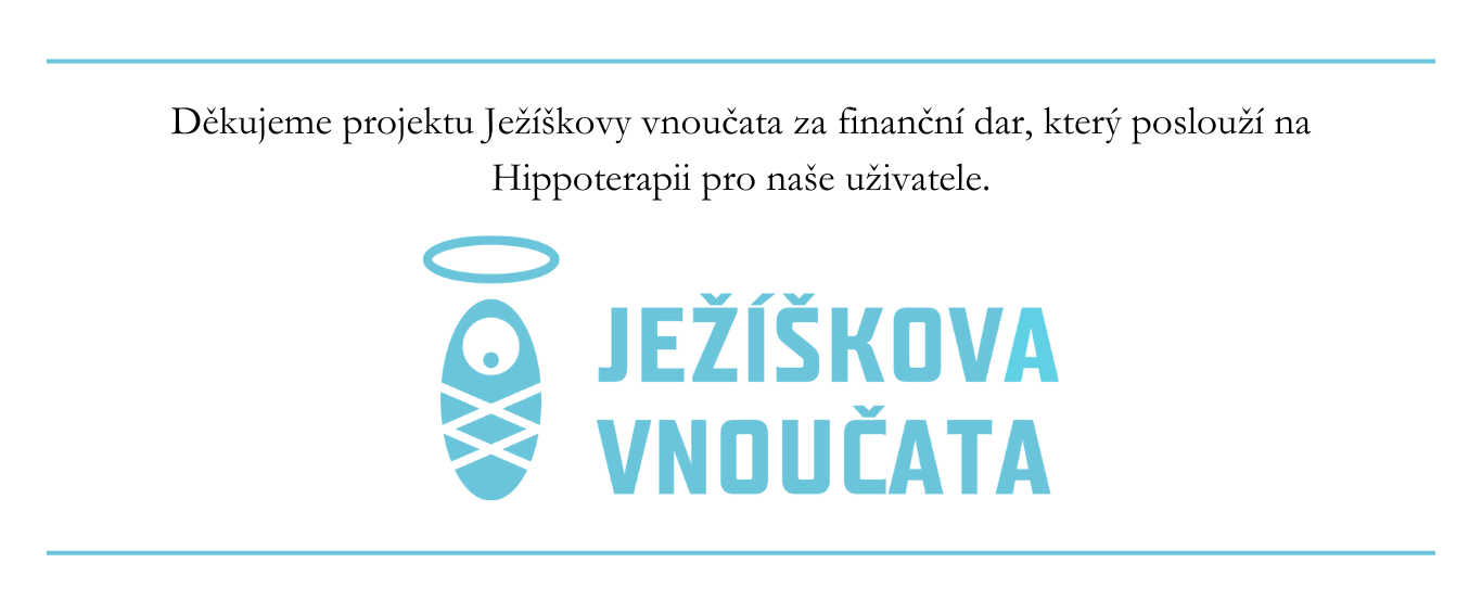 Finanční podpora projektu "Zvířecí návštěvy v zařízeních pro seniory". Projekt je realizován za pomoci Nadačního fondu Českého rozhlasu ze sbírky Ježíškova vnoučata. Naš domov díky němu bude moci zajijstit uživatelům pravidelné návštěvy canisterapeutického pejska a poníka Ondry na obou svých budovách. Děkujeme.