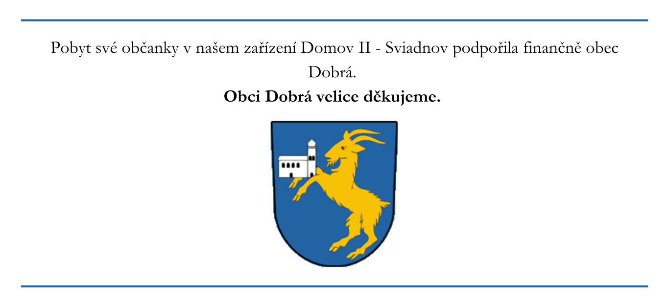 Pobyt své občanky v našem zařízení Domov II - Sviadnov podpořila finančně obec Dobrá. Obci Dobrá velice děkujeme.
