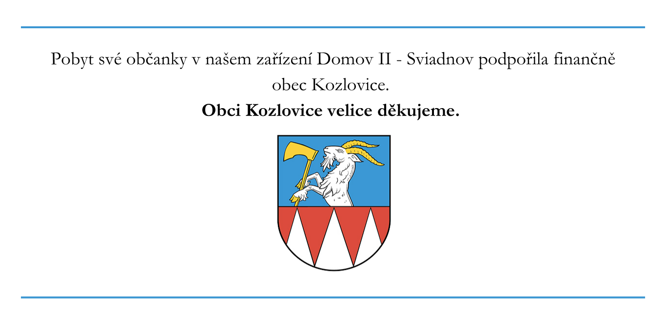 Obec Kozlovice podpořila darem na provozní náklady svého občana umístěného v zařízení částkou 6.000 Kč.