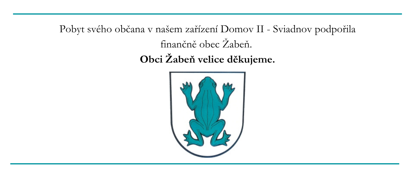 Obec Sviadnov podpořila darem na provozní náklady svého občana umístěného v zařízení částkou 2.000 Kč.